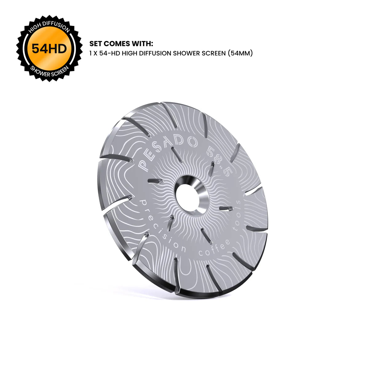 Designed to elevate extraction consistency, the 54HD High Diffusion Shower Screen delivers precise, even water flow across the entire coffee puck for cleaner, more balanced shots.